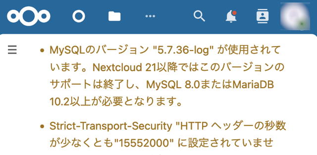 いつも黙々と働いてくれている Nextcloud ですが、ふと気がつくとバージョンがはるか先まで進んでおりました。31.0.7 ってマジ?? うちで動かしてるの 28.0.7 だよ。放置しすぎやな。