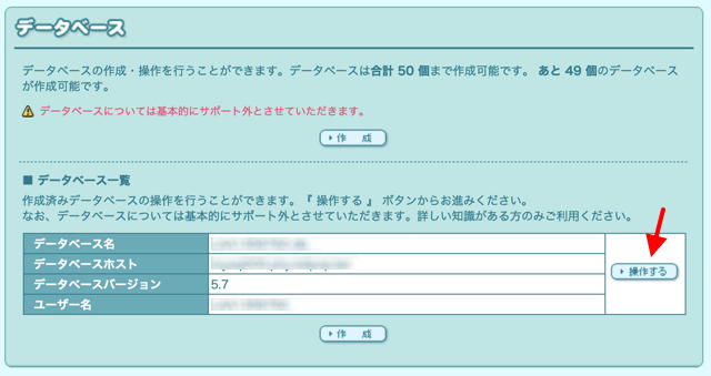 ロリポップのサーバ管理ページに戻って、データベースを新しく作成します。現在は MySQL 8.0 のみ選択できるようです。