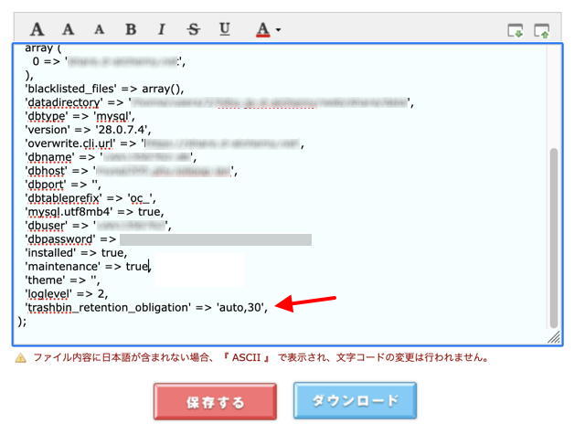 よく調べてみると、Nextcloud で削除済みのファイルがゴミ箱に残ったままであることがわかりました。そもそもこんな機能があるなんて知らなかったよ。30日以上経過したファイルは削除する設定にしました。config/config.php の trashbin_retention_obligation の値を 'auto,30' に変更します。